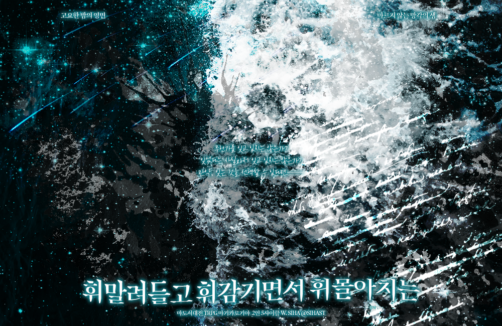 휘말려들고 휘감기면서 휘몰아치는 :